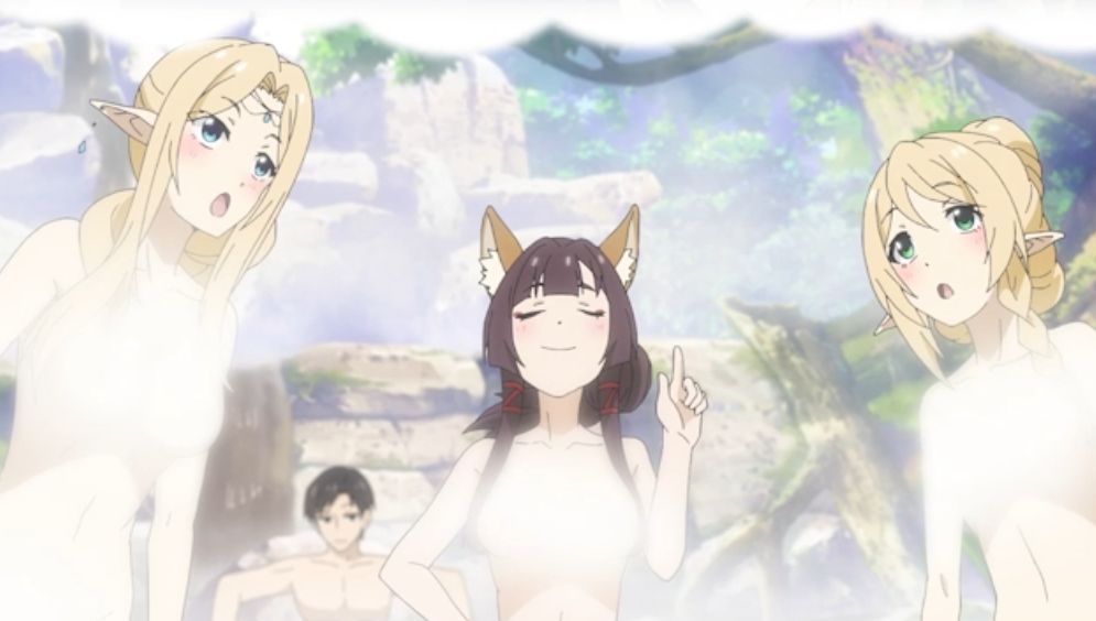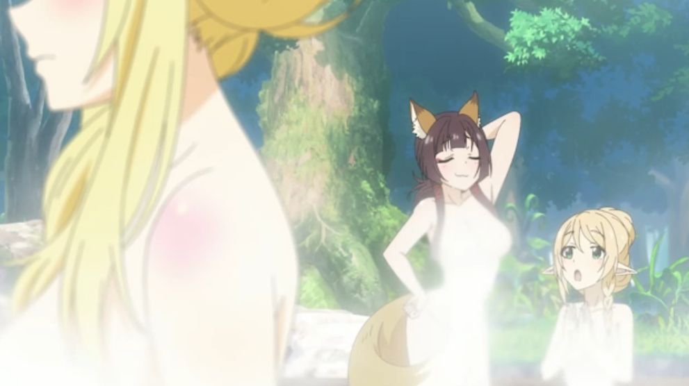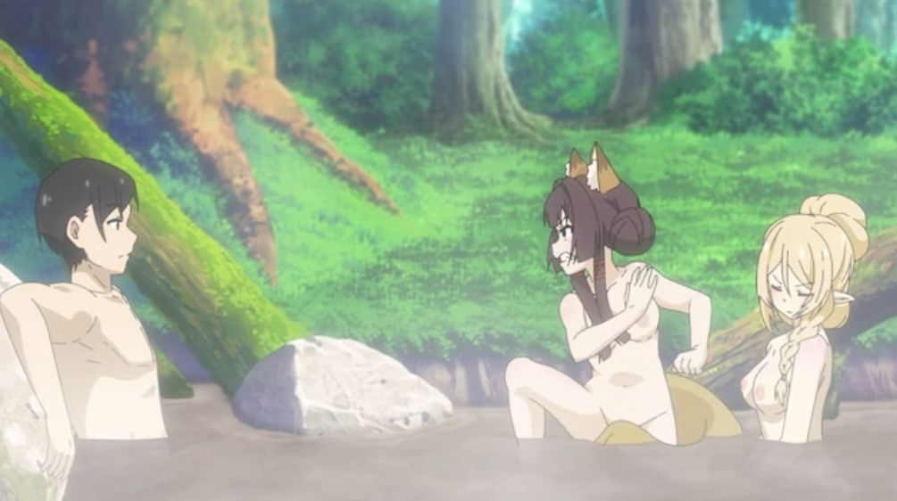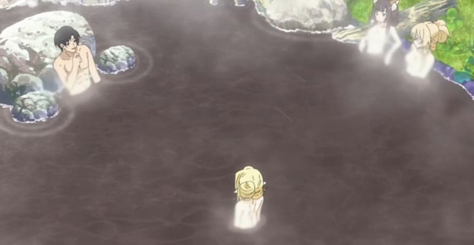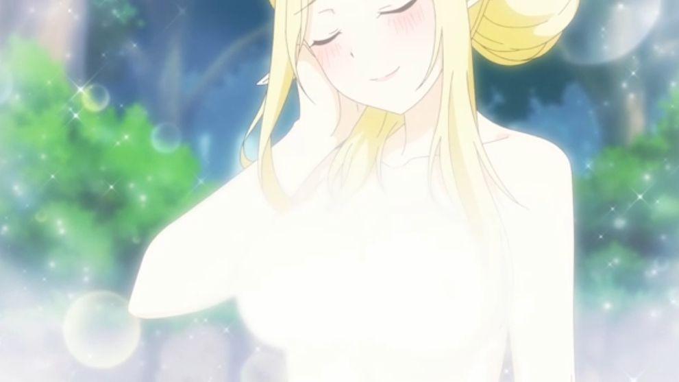 - 湯気で乳首が隠されている
